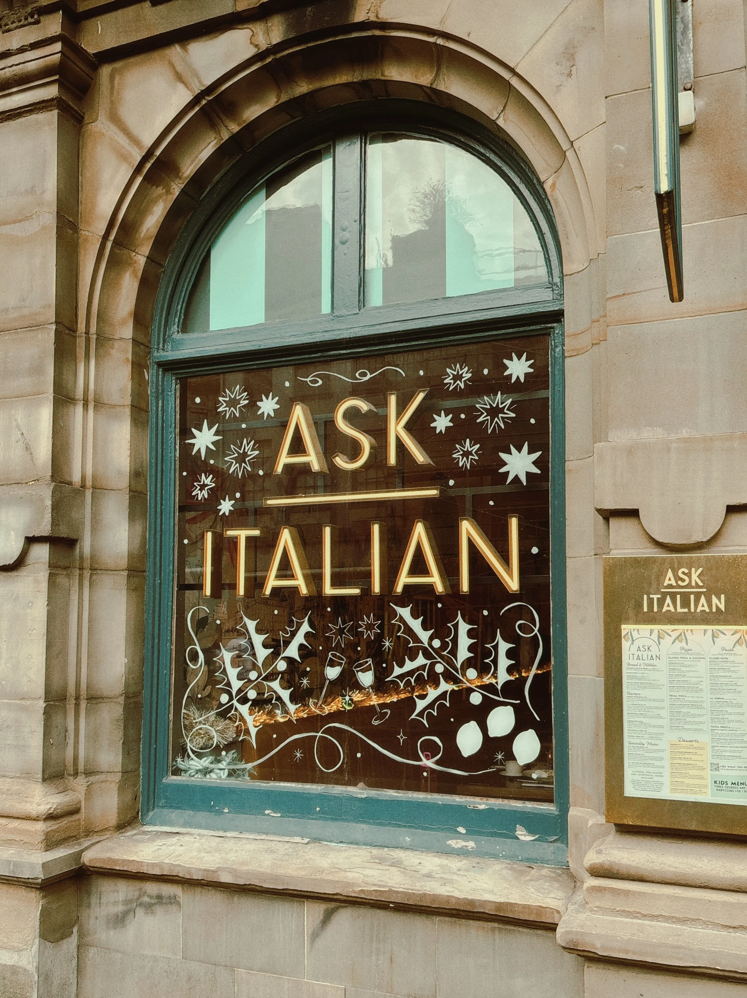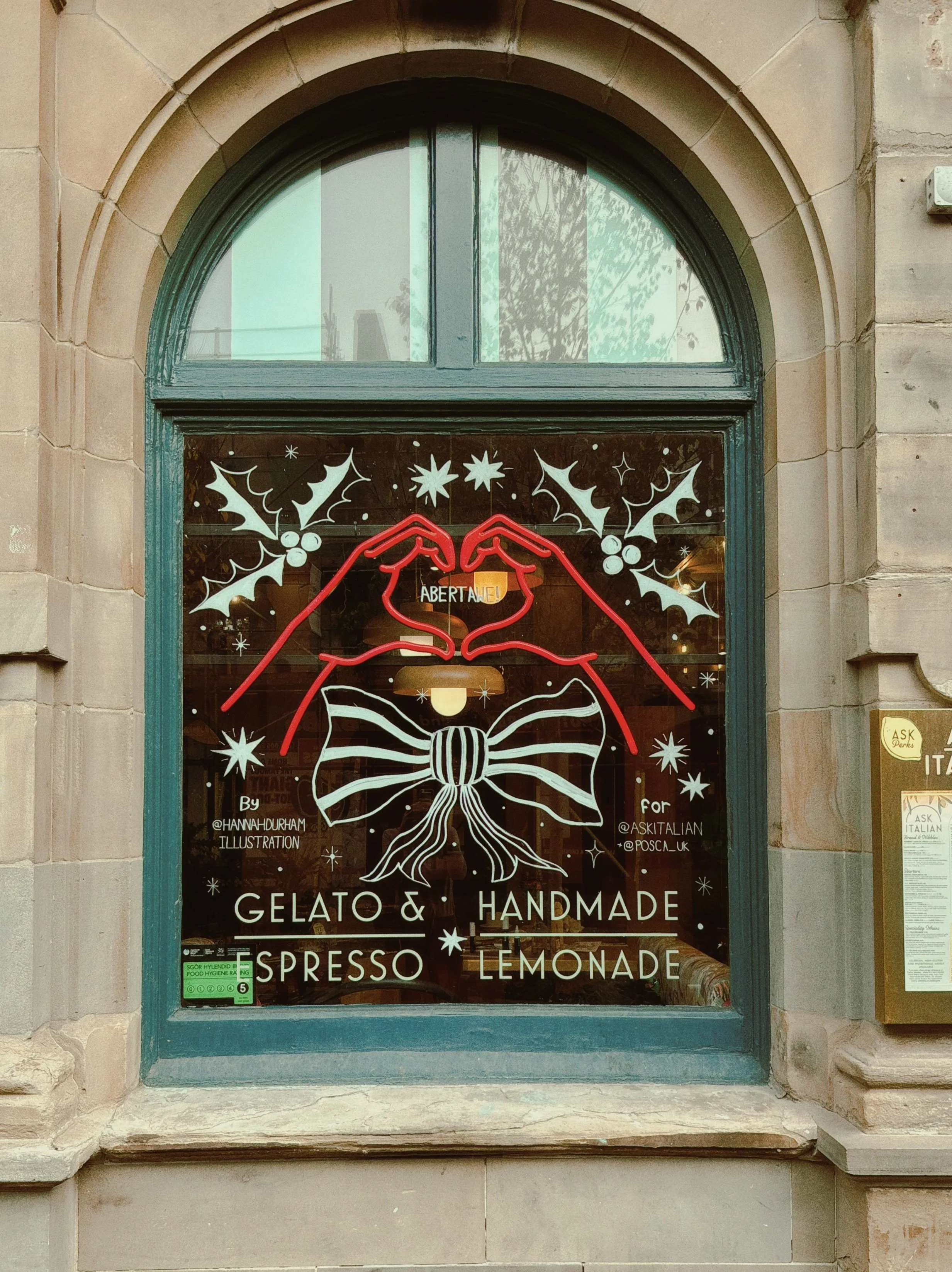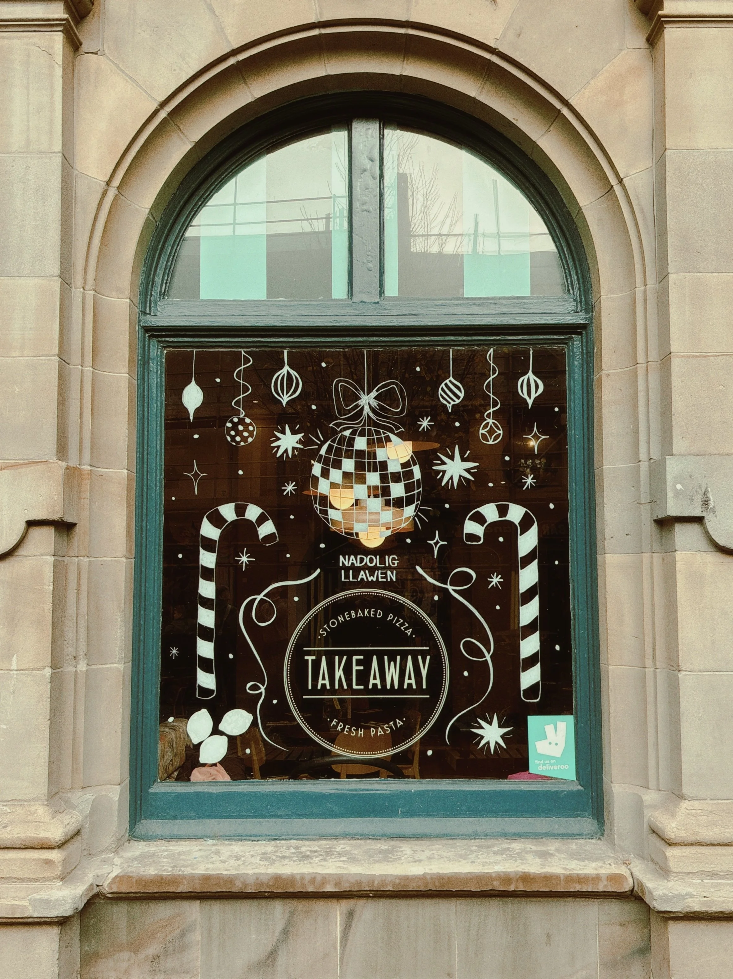 Christmas window illustrations - ASK Italian x POSCA (Cardiff, Wales)